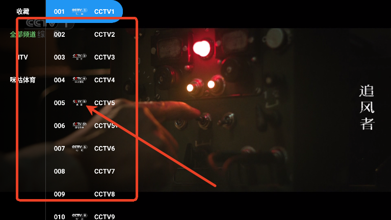 3、点击屏幕,就可以唤醒频道栏,切换频道