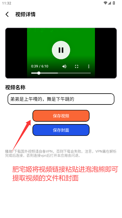 2、将视频的链接粘贴进APP,自动解析视频的封面和视频文件