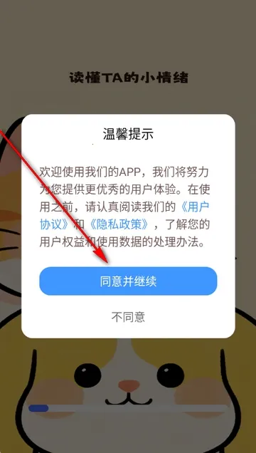 1、打开猫狗翻译工具app,点击同意隐私政策