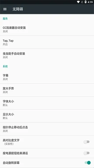 点击顶部的【无障碍服务被禁用】的提示。在打开的“无障碍”页面中点击底部的【Tap,Tap】,然后开启开关,在弹出的提示框中点击【确定】;