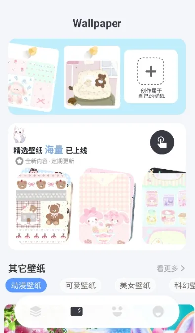 5内置海量壁纸资源,涵盖多种风格,一键匹配屏幕,搭配组件更美观。
