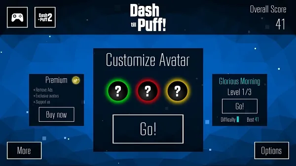 1、丰富的收集与定制元素:游戏包含多个独特而无尽的程序化世界,玩家可解锁新的头像颜色和轨迹来定制自己的角色,这些定制元素可通过闯关或抽奖获取,增加了游戏的长久吸引力。