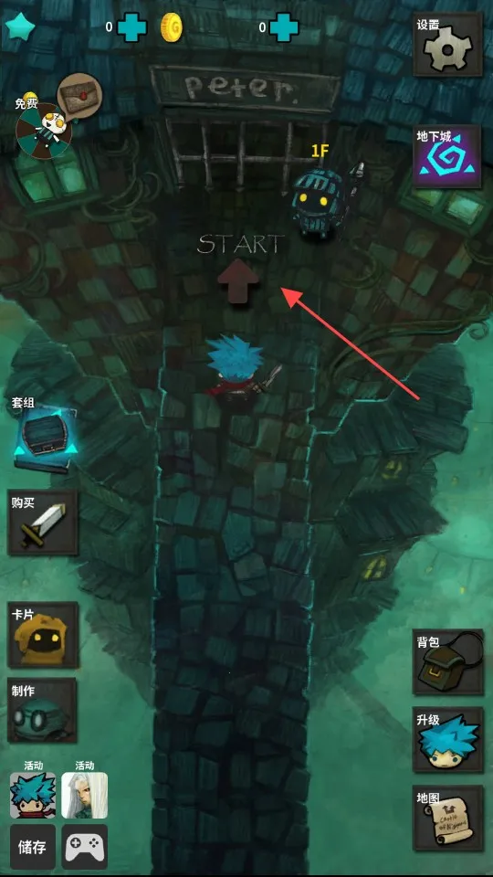 2、在游戏内界面,看到“START”箭头指引,点击相应方向进入城堡入口,开始游戏关卡挑战。