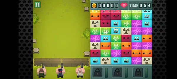 2、游戏采用攻防对战的模式,不管玩家选择了人类还是僵尸,尽情的消除方块使己方获得最终的胜利吧。