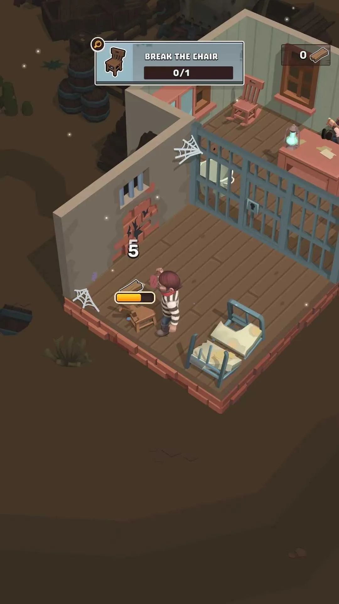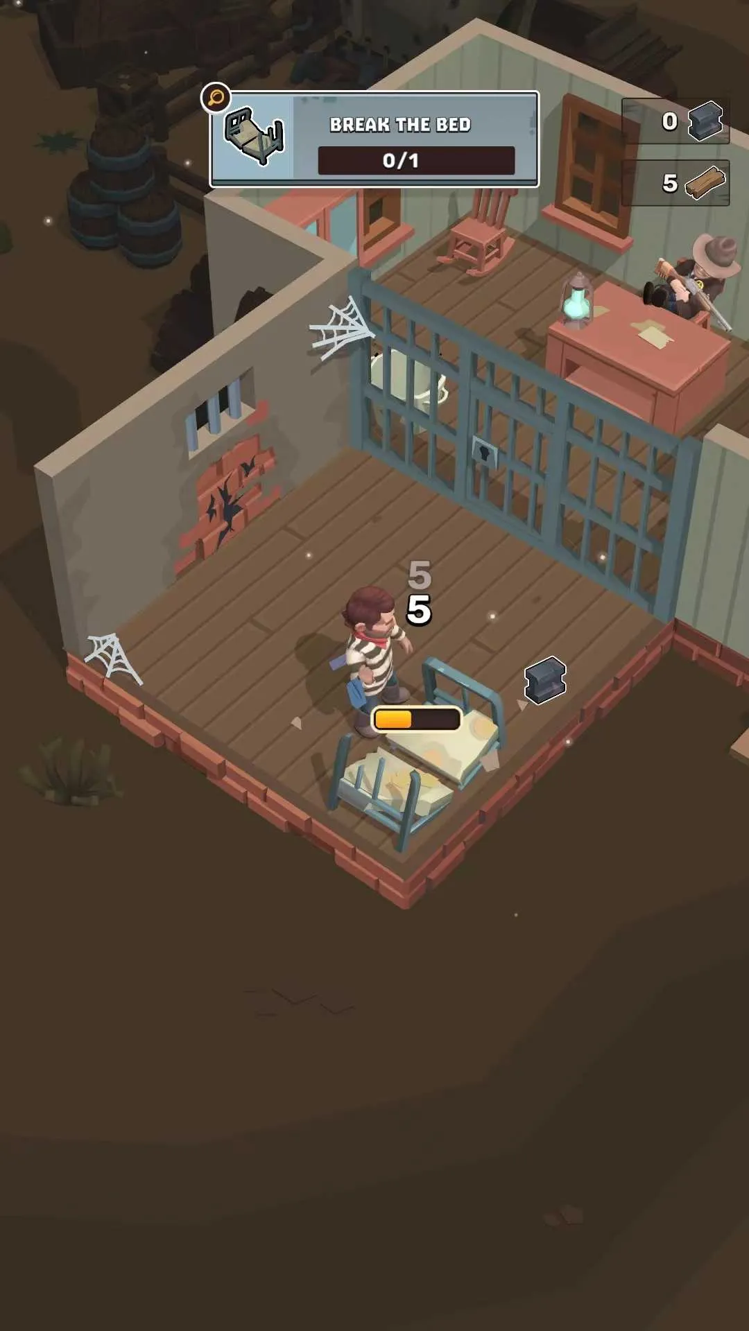 4、随后前往床铺位置,击碎床架结构,从中提取宝贵的钢铁原料,为后续装备制作打下基础。