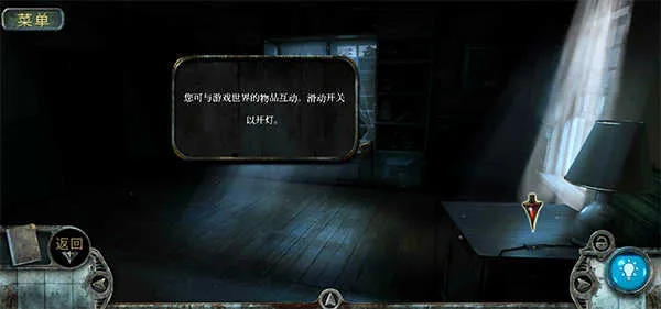 1、玩家可以与游戏世界的物品进行互动,滑动指针的开关,可进行开灯;