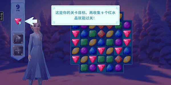 2、关卡目标会显示在屏幕左侧,比如收集一定数量的红色水晶,达到目标即可过关。