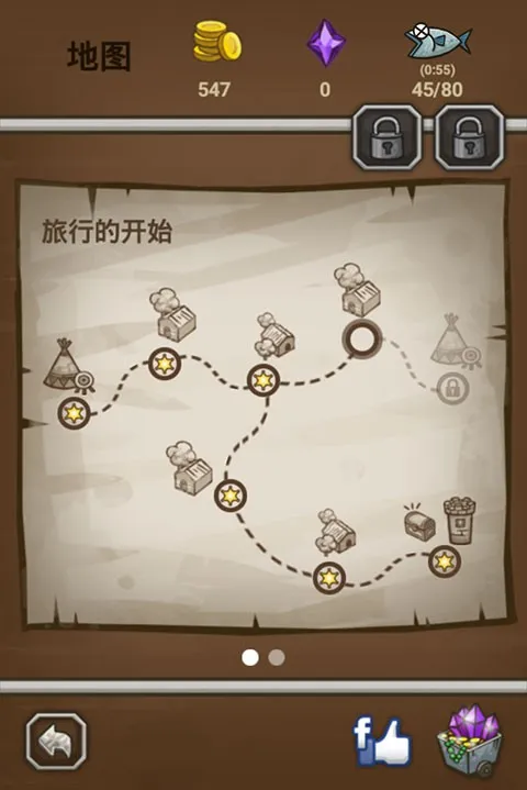 2、在猫射手游戏中,带有宝箱图标的关卡代表宝藏关卡,通关后必得一件随机装备。
