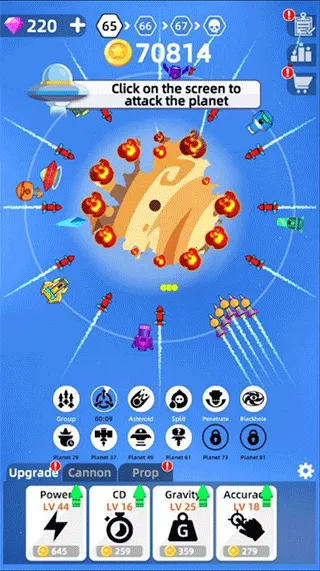 粉碎星球2025最新版本是一款主打星球毁灭模拟的手游。画面精美,玩法围绕用武器粉碎星球展开,操作轻松解压。可升级武器技能,还有多种道具。能解锁新星球,逐步升级强化毁灭方式,在破坏中释放压力,享受独特冒险。
