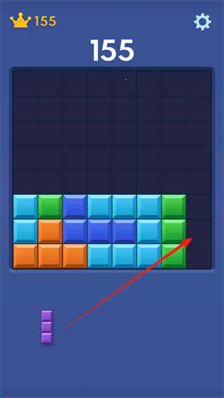 2、将方块拖拽到大方框右下角的地方,就可直接清除三行。