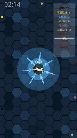 总体来说,游戏的难度不大,与一般的io类游戏玩法相类似,但在规则上却有些许差异,主要还是以操控着飞刀来击杀对手为主旨,但唯一不同的是防御状态下你会处于无敌,从而让弱小的敌人也具备一定的反击能力。