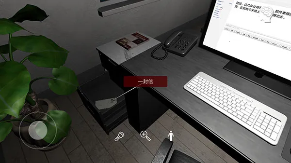 -设计双雄:在财务室靠门这边桌子上电脑开机之后,进入网页进行调查陆加的社会关系。(注意:电脑开启需要放大镜头,电脑上有一颗开机按钮,不放大镜头不好点)