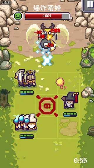 总体的来说游戏难度并不是很大,只需要在九宫格中自由的调整英雄的位置来进行作战,期间移动英雄可躲避BOSS的攻击,怒气满后可点击释放技能。