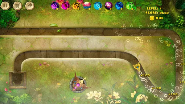 4. 游戏玩法简单,点击屏幕发射彩球,匹配三个或以上相同颜色消除,同时阻止球进洞,创造连锁Combo还能获更多奖励分数及增加道具产生机率。