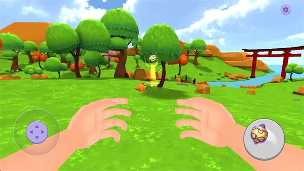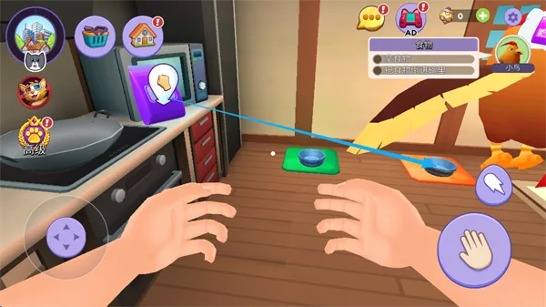 7、将视角对准宠物的“饭碗”,点击屏幕右下角的“小手标识”即可投喂。