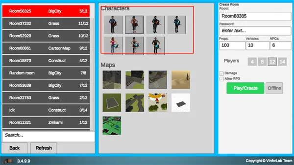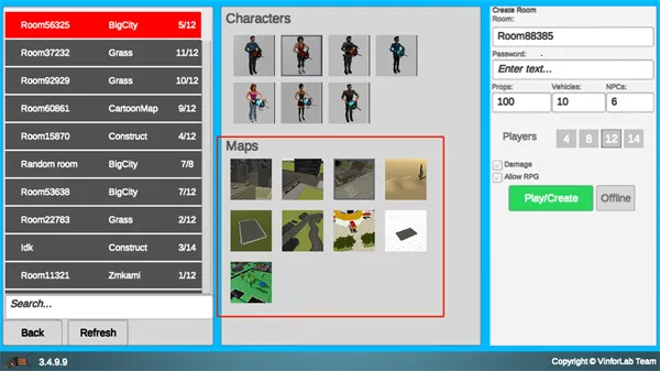 3、下方是地图,选择好后点击offline创建房间;