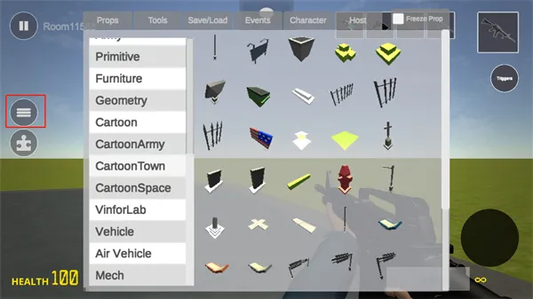 7、左边的按钮点开可以看到一些物品,你可以将其加入到游戏中。