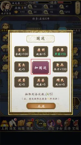 7、有五次免费抽取国运的机会,次数用完了需要每十年才能刷新。